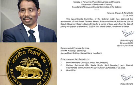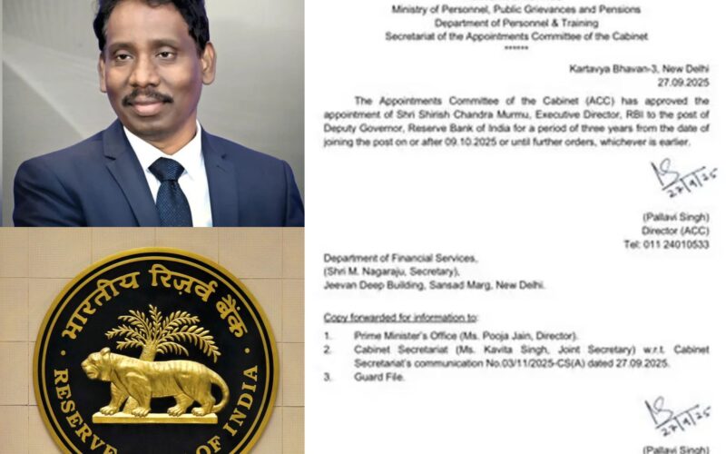 नई दिल्ली (डी. के. चौहान): केंद्र सरकार ने शिरीष चंद्र मुर्मू को भारतीय रिज़र्व बैंक (RBI) का डिप्टी गवर्नर नियुक्त...